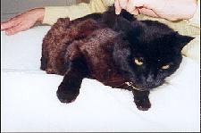 You will find it easier to inject your cat if you form a good tent (pouch) with the skin. On the left you can see us making a tent on Thomas.